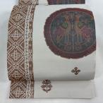 美品 袋帯 逸品 華文 向かい鳥 金糸 相良刺繍 ベージュ お太鼓柄 正絹 中古