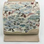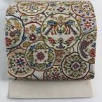 美品 袋帯 逸品 向鳥 草花 相良刺繍 ベージュ お太鼓柄 正絹 中古
