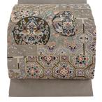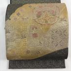 美品 袋帯 逸品 草花 鳥 唐織 箔 灰茶 六通 正絹 中古
