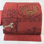 袋帯 秀品 鳥 華文 金糸 箔 小豆色 六通 正絹 中古