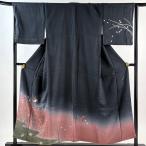 訪問着 身丈154cm 裄丈65.5cm M 袷 二代目清次郎 落款あり 鳥 木賊 金彩 ぼかし 墨色 正絹 秀品 中古