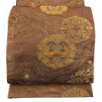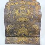 袋帯 秀品 向かい鳥 華文 金糸 箔 茶色 六通 正絹 中古