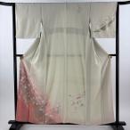 訪問着 身丈158cm 裄丈64cm M 袷 桜 鳥 金銀彩 染め分け ベージュ 正絹 秀品 中古