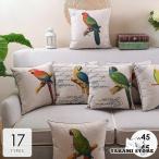 クッションカバー カバーのみ 北欧 45×45cm おしゃれ 鳥 自然 動物 ボタニカル おしゃれ グリーン ライトグリーン ブルー レッドスタイリッシュ