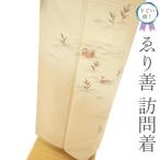 すごい値! 紬 訪問着 袷 着物 ゑり善扱い 未使用 正絹 薄オレンジベージュ 鴛鴦 新古 仕立て上がり 身丈167 裄65 M L みやがわ nek01515