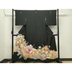 平和屋着物●豪華黒留袖 尾長鳥草花文 暈し染め 金彩 正絹 逸品 CABA9839gh