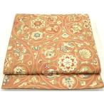 美品 袋帯 逸品 関西仕立て 千八百織 華文 向かい鳥 金糸 箔 ベージュ 六通 正絹 中古