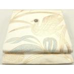 美品 袋帯 逸品 関西仕立て 動物 枝花 ベージュ 六通 正絹 中古