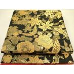 美品 袋帯 逸品 草花 向い鳥 金糸 箔 黒 六通 正絹 中古