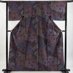 美品 小紋 身丈157cm 裄丈63.5cm S 袷 前田仁仙 落款あり 鳥 草花 紫 正絹 逸品 中古