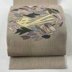 美品 袋帯 逸品 夏帯 鳥 葉柄 金銀糸 薄茶色 お太鼓柄 正絹 中古