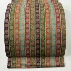 名古屋帯 逸品 動物 楽器 金彩 ぼかし からし色 正絹 中古