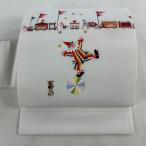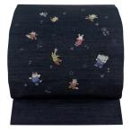 美品 名古屋帯 逸品 八寸名古屋帯 動物 風船 刺し子刺繍 黒灰 正絹 中古
