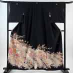 黒留袖 身丈159.5cm 裄丈63cm S 袷 中町博志 落款あり 鳥 草花 黒 正絹 逸品 中古