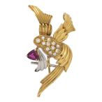 RU0.37ct 0.18ct 鳥モチーフ バード ルビー ダイヤモンド ブローチ ペンダントトップ K18YG-4.3g イエローゴールド×プラチナ /h260313/606911