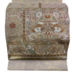 美品 袋帯 秀品 華文 向かい鳥 金糸 箔 金色 六通 正絹 中古