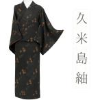 中古 久米島紬 正絹 黒 リサイクル 着物 十字絣 鳥 カジュアル 身丈163.8cm 裄66cm TLサイズ 仕立て上がり お茶会 No.i3-0844