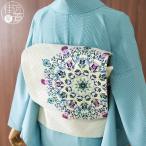 召しませ花 名古屋帯 染め 京袋帯 小花家紋 アイボリー 日本製 正絹 なごや帯 オフホワイト 白 花模様 鳥 着物 きもの カジュアル レディース 袷 春秋冬 ym503