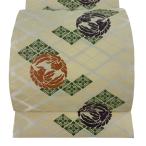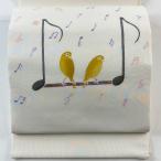 開き名古屋帯 逸品 落款あり 鳥 音符 クリーム 正絹 中古