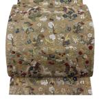 袋帯 逸品 人物 動物 刺繍 金糸 薄茶色 六通 正絹 中古