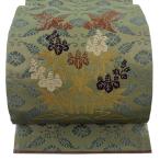 美品 袋帯 逸品 紋屋井関 落款あり 御寮織 桐 鳥 刺繍 金糸 灰緑 お太鼓柄 正絹 中古