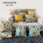 クッションカバー 45cm 45cm 正方形 角型 1枚 単品 カバー カバーのみ ファスナー 小鳥 鳥 植物 葉 ギザギザ ハート レトロ 北欧 ジ