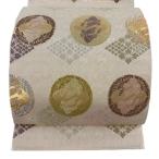 美品 袋帯 名品 鳥 花菱 刺繍 箔 ベージュ 六通 正絹 中古