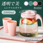ケトルガラス ケトルティーポット 冷水ボトル 2リットル 耐熱性 大容量 麦茶 ティーティーポット 冷蔵庫 ケトル透明 フ
