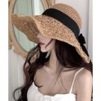 帽子 ハット 麦わら帽子 ストローハットリボン付き夏帽 レディース