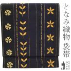 袋帯 京都 西陣 となみ織物 正絹 麹塵染 黒地 ブラック 草花 花柄 縞 モダン カジュアル 中古品 仕立て上がり みやがわ sb52428