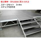 イベントステージセット 3x4m 【ステップ付き】組立簡単 軽量 アルミ製 高さ3段階調節 ステップ付き