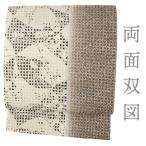 すごい値! 名古屋帯 八寸 未使用 正絹 組織 全通 薄黄茶 白ベージュ 菱格子 美品 松葉仕立て 上質 新古品 仕立て上がり みやがわ neb01634