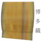 博多織 名古屋帯 中古 正絹 黄色 黄茶 仕立て上がり カジュアル お洒落 八寸名古屋帯 No.i6-2479