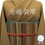 すごい値! 袋帯 リサイクル 正絹 全通 京都 西陣 こげ茶 黄茶 茶 段霞文 金糸 カジュアル 上質 美品 中古 仕立て上がり みやがわ neb01564
