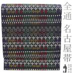 名古屋帯 未使用 正絹 全通 九寸 京都 西陣 織り柄 黒地 紫 赤 黄茶 緑 白 草花 カジュアル 美品 新古品 仕立て上がり みやがわ sb54633