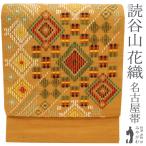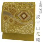 名古屋帯 九寸 本場琉球 読谷山 花織 正絹 沖縄県 手花 ティバナ 紬 黄茶色 幾何学文様 カジュアル 中古 仕立て上がり みやがわ sb53501