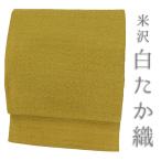 名古屋帯 正絹 白たか織 紬 中古 黄色 茶 仕立て上がり リサイクル カジュアル 帯 お洒落 八寸 No.i6-2559