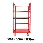 カゴ台車 かご台車 カゴ車 ロールボックス ロールパレット パレット 看板黒板 業務用台車 大型台車 キャスター レッド W80×D60×H170(cm)