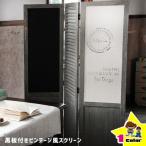 パーテーション 木製 北欧 黒板付き 間仕切り スクリーン 3連 衝立 インダストリアル 隙間 収納 コンパクト AS