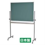 日本製 移動式ホワイトボード(黒板)(キャスター脚付き)900×1800 メタリックブラック脚 (回転式ボード:ホワイト×黒板)(HSS-P)『予約』