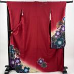 美品 振袖 身丈171cm 裄丈67.5cm L 袷 桜 鼓 金彩 刺繍 えんじ色 正絹 秀品 中古