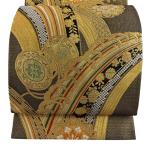 袋帯 秀品 鼓 波頭 金銀糸 箔 金色 六通 正絹 中古