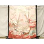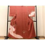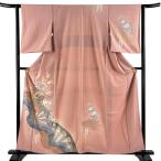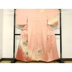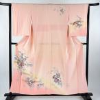 訪問着 身丈158.5cm 裄丈62.5cm S 袷 鼓 草花 金銀彩 ぼかし ピンク 正絹 秀品 中古