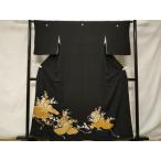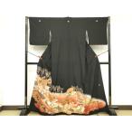 平和屋着物■豪華黒留袖 駒刺繍 地紙重ね鼓飛鶴花文 金彩 正絹 逸品 BAAW6861mz