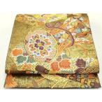 袋帯 秀品 上皇の逸品 鼓 草花 金糸 箔 金色 六通 正絹 中古