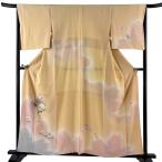 訪問着 身丈157.5cm 裄丈66.5cm M 袷 落款あり 鼓 草花 金糸 金彩 薄オレンジ 正絹 秀品 中古