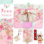 七五三 7歳 女の子 購入 2025年新作 日本製 合繊 金駒刺繍 絵羽付けこども着物と結び帯 コーディネートセット「水色xピンク、鼓・花爛漫」UFWL-c-d101PP