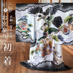 [ 正絹 ] お宮参り 男の子 初着 産着 鷹に宝船 白×黒 一つ身 のしめ お祝い着 掛着 ヒッタ 松 鼓 矢 鹿の子 匹田 着物 和服