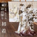 [ 正絹 ] お宮参り 男の子 初着 産着 鷹に松と束ね熨斗 薄茶色 ベージュ 鼓 吉祥 一つ身 のしめ お祝い着 掛着 着物 和服 誕生記 (ym408s)