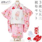 七五三 着物 3歳 被布セット 女の子 京都花ひめ 鈴2 ピンクの着物 白色の被布コート 刺繍入り 桜 鼓 フルセット 販売 購入 hifuset-00066